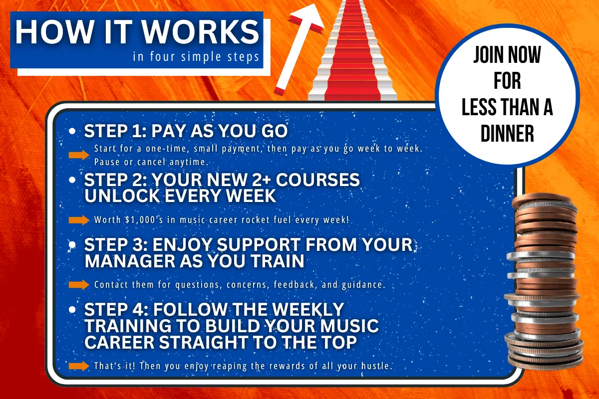 I created The Music Industry Shortcut so that every week’s knowledge and information can easily be digested in as little as 2 hours A WEEK. And you consume it by just turning on videos and watching it like a Netflix binge.